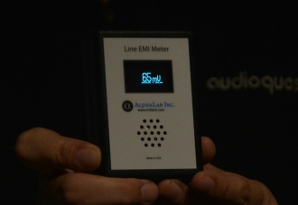 活动最后,现场对比了不同系列的线材,不同价位的产品相对应是有明显的变化。而试听过程中,还测试了Niagara 5000电源处理器的效果,首先将测试仪接入墙插,得出1825mV的数值(上图左),而经过杂Niagara 5000电源处理器再接入测试仪,测出65mV的数值(上图右),可见杂讯和干扰明显地降低了。合理调配更换线材是把玩音响的一大乐趣,audioquest推出的各个级别线材,正是满足了发烧友的需求。如此认真讲究的制作,完全秉承了audioquest长此以往的实事求是、一丝不苟的严紧态度。