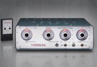THÖRESS(特雷斯)由REINHARD THÖRESS(莱因哈德ˑ特雷斯)先生于1998年在德国Aachen(亚琛市)创立,专注于Hi-End顶级音响的理论探索发展、技术创新研究、工艺改良实践、产品设计制作。目前,THÖRESS已正式推出并向全球销售旗下共7个型号音响器材,它们分别是Preamplifier前级放大器、Phono Enhancer增强型均衡参数式唱头放大器、F2A11Integrated Amp三极电子管单端放大合并式立体声放大器、300B Power Amplifier三极电子管单端放大后级放大器、845 Power Amplifier旗舰级三极电子管单端放大后级放大器、双功能前级放大器(设有耳机放大功能)、EHT胆前石后合并式放大器、EHT单声道后级放大器、Loudspeaker-2落地式扬声器、1D66落地式扬声器。现场展示有双功能前级放大器、Phono Enhancer增强型均衡参数式唱头放大器以及300B单声道功率放大器。
