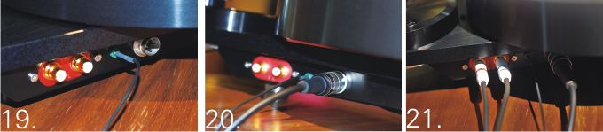 19、接入地线,另一头接到唱放。 20、接入分体电源 21、插入RCA唱头线,把唱头拾取的信号传输到唱头放大器。以上就是BRINKMANN黑胶唱盘的安装和基本的调校过程,当然这些步骤离开声还有一定距离,在这里我们先卖个关子,留待下期再叙。