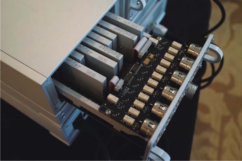 内在方面,Boulder 2010的两个独立的放大器以抽屉式安装在各自的厢房里面,拆卸极其容易;作为核心部分,2010每个声道采用了9个独家特制的Boulder 993放大模块,而不是把分立元件直接做在电路板的传统做法,这9个模块以何种方式工作,厂家并没有发布相关资料,我们也不能妄加猜测;把放大部分做成模块的不乏其人,不过一般都是一个模块了事,有些甚至只是为了商业秘密而为之,而Boulder 2010整机一共使用了18个模块,其规模之大前所未闻,事实上Boulder 993放大模块不单是使用在Boulder 2010上,其它型号的机器也使用,也许可以这么理解,Boulder 993就是一个超级运放。