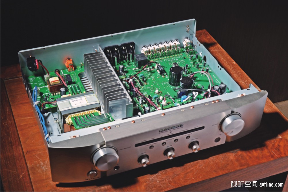 而新款PM5005入门级合并式放大机则同样在马兰士史上创下新河。因为它率先在该级别产品中提供电流反馈式电路,此特色通常为更加昂贵的机型所使用。此技术提供了非常快速且精确的信号处理,带来具有完美平衡的立体声声音再现以及非常开放和精确的音场。PM5005尽量避免使用IC,放大部分使用分离式电路构成,包括HDAM-SA2加上HDAM-SA3全分离式高速放大模组。HDAM-SA3 是互补级推挽型电路的放大器模块,是温度特性优良、转换速度超过200V/μsec的超高速放大器,最早在Premium系列旗舰级产品中率先采用,应用在入门级产品中也是首次。得益于马兰士开发的分离式电路放大模块,只需调整模块数量就能轻松的提升机器性能,比如说老旗舰PM-11S1便使用了34组HDAM-SA3。此外,新型典雅的旋钮设计,令今年的机型看起来比旧款PM5004更时尚。更为重要的是,它附带新遥控器以及新的低功率待机和自动待机模式。但作为一个放大器:PM5005为8Ω负载提供每声道40W功率,包括一个金属底盘和前金属面板以确保其基座非常坚固和结实。还具有唱机MM均衡器以及音源直入功能,以确保最短的信号路径,并且配备耳机输出。毫无疑问,PM5005提高了所谓入门级产品的性能台阶。