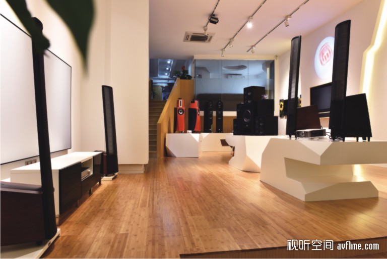 整个旗舰店囊括了5套宅影院标准方案体验、3大全系产品陈列区以及2间专业独立视听室。