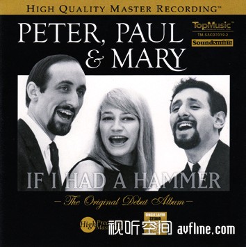 毫无疑问,本碟是2014年我接触到的所有唱片出品中最令我眼睛大亮且喜爱无比的一张,原因既在于我三十年来对“彼得、保罗与玛丽”这支美国民谣音乐史上最为优秀也最令人膜拜的三重唱团一直情有独钟,在于它是“彼得、保罗与玛丽”于1962年灌录的处女作专辑,也在于它是以单层SACD高格式翻制的发烧版靓碟。两位男歌手兼吉他手彼得耶罗、保罗斯图奇和女歌手玛丽特拉沃斯组成的这支融天衣无缝、美轮美奂的三部和声和技巧娴熟、清新曼妙的双吉他于一体的三重唱团当年在纽约格林威治民谣村驻唱时创作和演唱的《清晨》、《柠檬树》和《如果我有一把锤子》等12首民谣经典都荟萃于斯,合唱人声朴素纯美,两把吉他剔透传神,百听不厌的传世之音与精益求精的超凡制作使得本碟成为珍藏珍品!