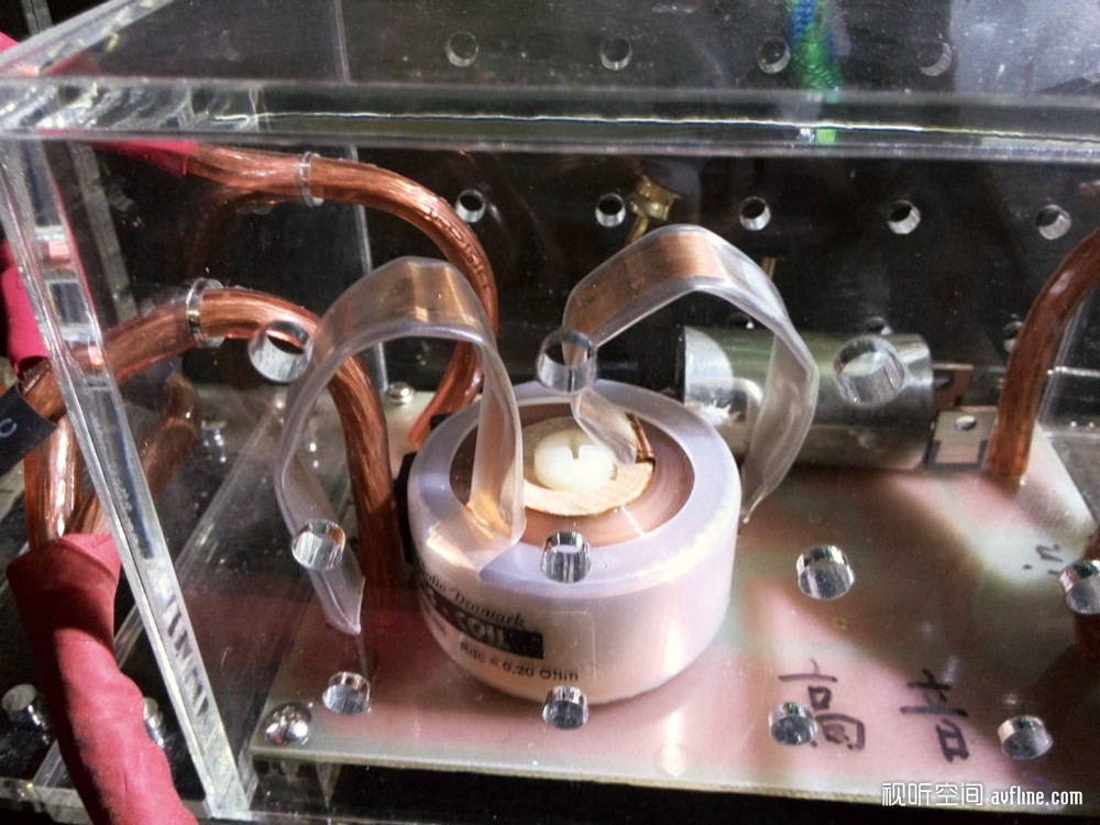 O:这四只手掌那么大的分频器就放在尾箱,我看到了拳头大的铜箔电感、鸡蛋大的V-Cap电容等,这些东西别说汽车音响,就连家用的世界名厂也不一定肯用上。单从元件价格,已经超过了喇叭。但旁边我还看到一只八宝粥易拉罐,罐子上接着德国JIB的RCA线,似乎暗示着这个易拉罐里“内有乾坤”。这个又是什么秘密武器呢?