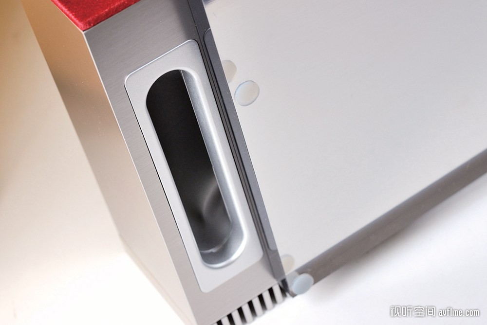 Mu-so看上去像是普通的无线一体式播放机,但实际上,铝制机身令Muso拥有非常惊人的重量——13kg!Muso音箱采用了MDF中密度板、外部由整块阳极处理的氧化铝包裹,能将器材的谐振干扰减至最低。