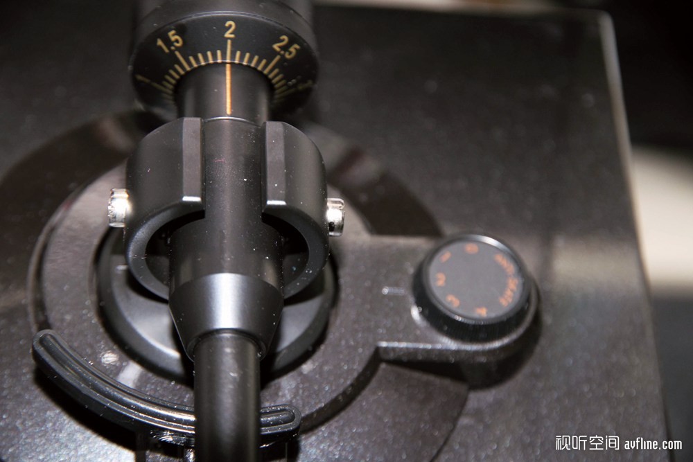 收到唱机后,由于没有中文说明书,自己又不具备调试能力和经验,只能查看一些参考资料和教程。打开包装,依次装上唱头、平衡锤、转盘、皮带,唱片垫等配件。将原用于CD机的防震板取下给了黑胶唱机,用水平仪测量确认机器的放置处于完全水平且十分稳固的状态,将唱针轻放在调校尺上,观察、确认唱针是否垂直。按说明书图示将防滑力调节盘的刻度数字放在“2”的位置上,唱头上虽有两个固定螺丝,拧开时可以前后拉抻,但没有调试的依据,只得放在原位。