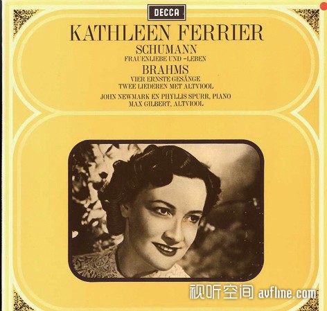 舒曼的声乐套曲《妇女的爱情与生活》对费丽尔来说有着非常个人的体验,实际上对任何一位爱情和婚姻美满的女中音来说,都能与这部作品擦出独特的火花。套曲的第四首《你给我戴上戒指》透露出难以抑制的甜蜜感,大概是让她想起了自己的丈夫对她求婚时候的情景吧;而《如今你让我第一次痛苦》则是另外一种感觉,前三联生活周刊朱伟说费丽尔演唱这首歌“是清寂中细细抚摩无法排遣的哀伤。”深以为然。