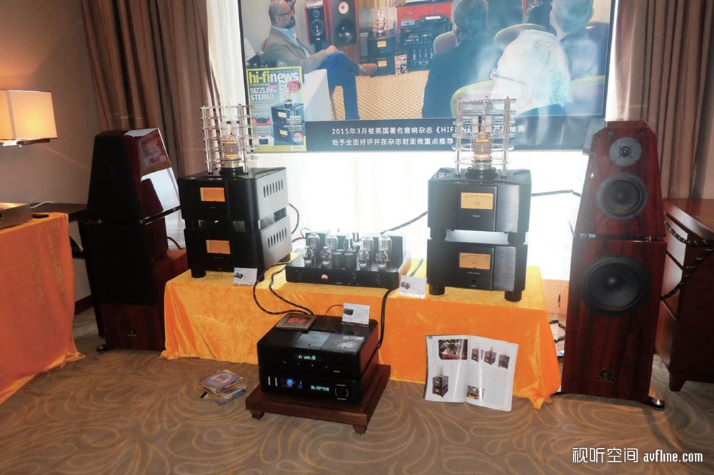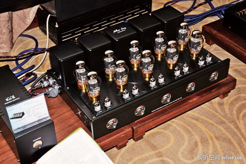 右下:美星另外一间展房展出了国内绝无仅有的5声道家庭影院胆后级MC5s,每声道70W,胆机的70W往往比晶体管机的100W还要强而有力。