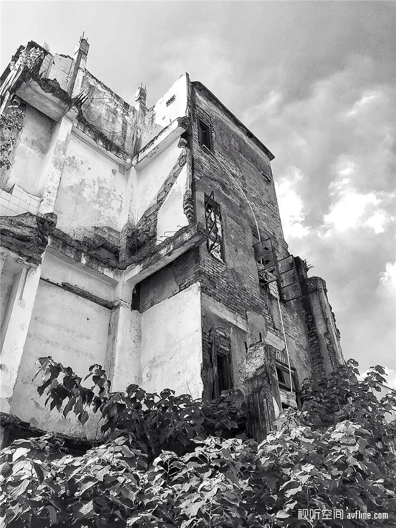 一座尚未被完全拆毁的房屋像纪念碑一样耸立着,一些施工者还在这幢楼里住生活