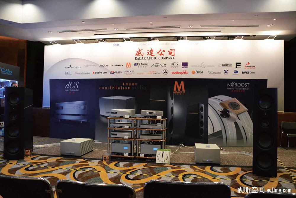 威达公司的展房以dCS最新推出的Rossini CD转盘、Rossini Clock时钟、以及Rossini DAC解码器作为音源,Constellation audio群星荟萃的Altair II前级和Hercules II Mono后级推动Magico魔力的Q7 MKII音箱