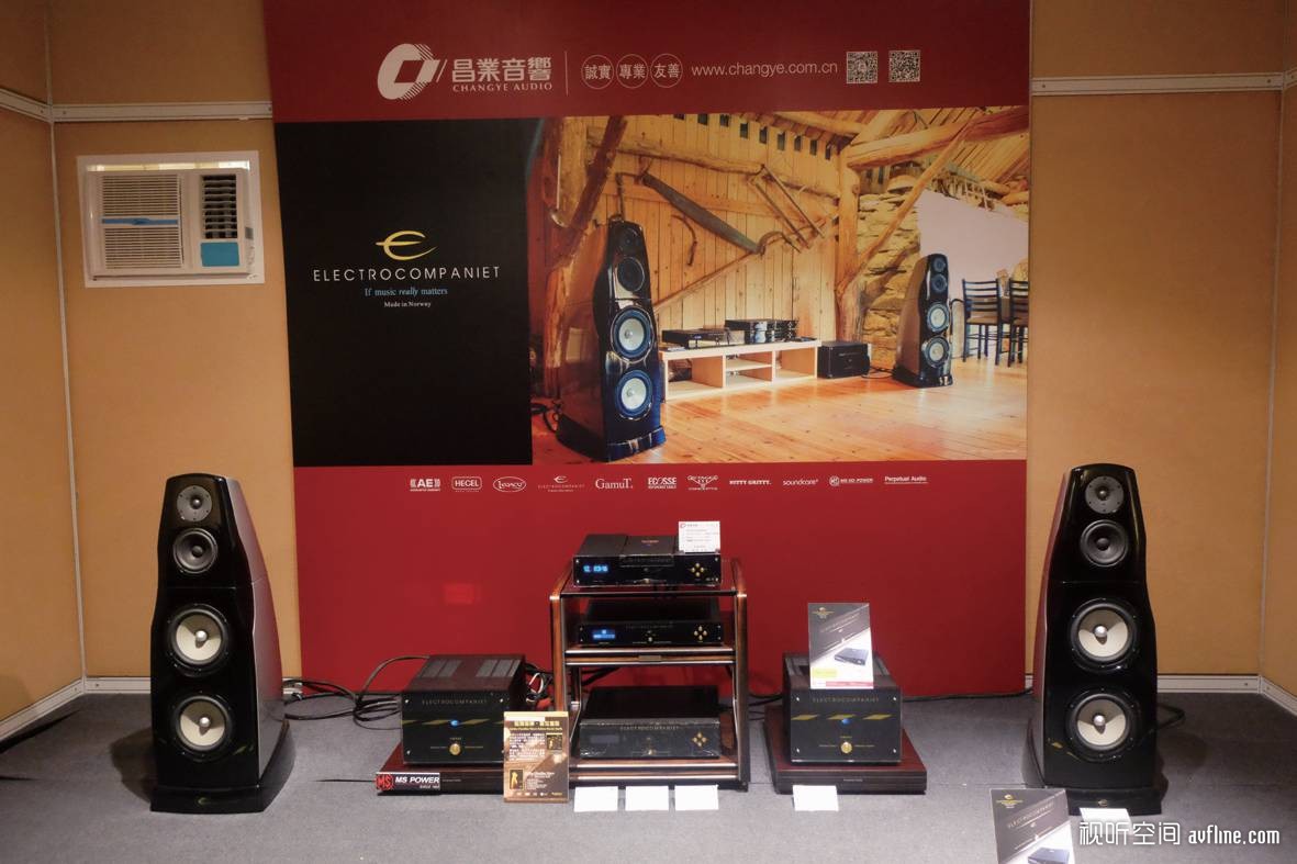 另一房间展示了Electrocompaniet音乐之旅的EMC1 MKIII的SACD/CD机、EC48前级以及AW400后级推动同样是来自音乐之旅的Nordic Tone Model 1音箱