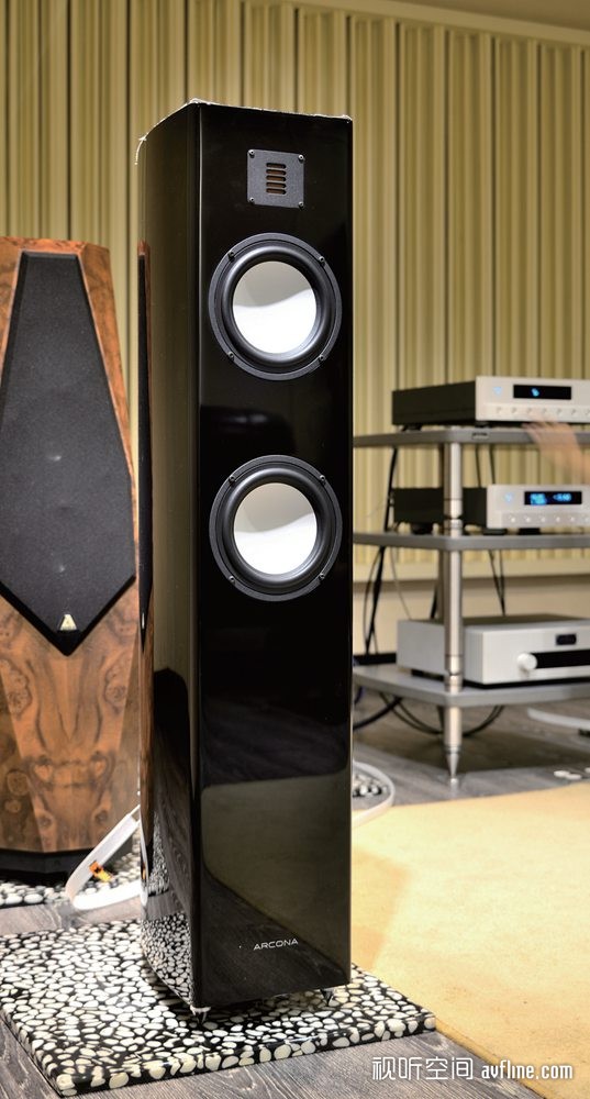 Arcona 80为三单元2.5路分频落地箱,采用封闭式和反射式结合的箱体结构,倒相孔在箱底,所以Arcona 80也是自备了脚钉确保离地面有足够的距离,同时也配备了脚钉底座让音箱站立得更为稳定。Arcona 80使用精心设计的对称式分频器,配有高通滤波阻隔杂讯。单元上使用气动高音,中音和低音单元则为7寸,使用新的XPulse振膜。不过官方很神秘的并没有标出频响范围和灵敏度等数据,我们也不需理会这些,直接用耳朵去检测。
