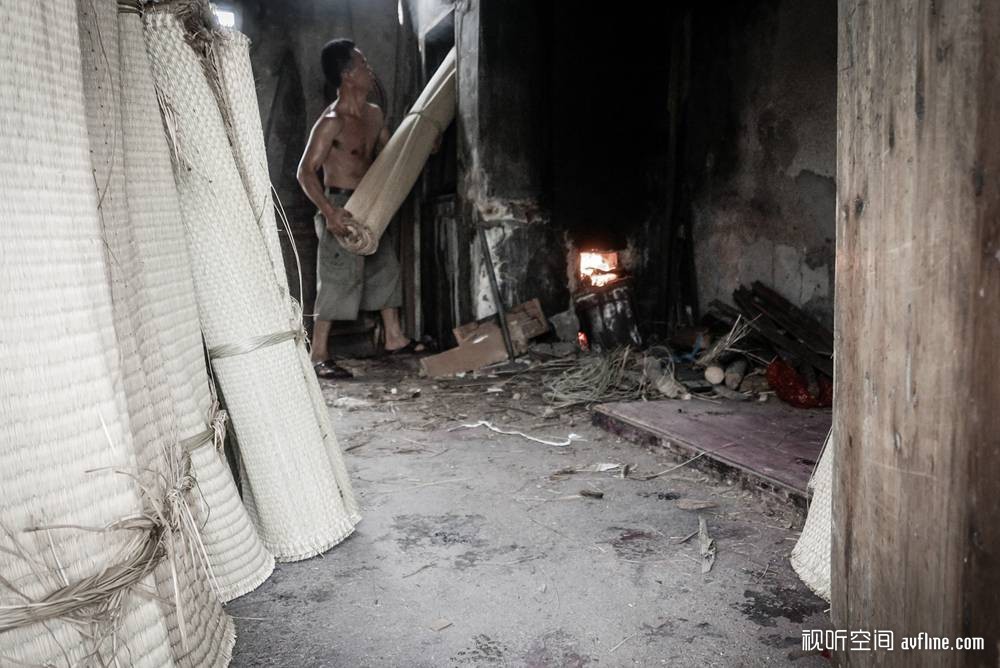 草席编织完需要进行印花,现在整个村也只有这一家人在做印花的工作