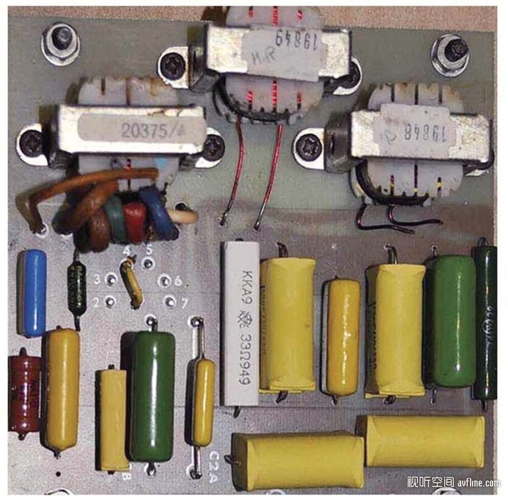 在此我们还要着重阐述Rogers“大金牌”BBC LS3/5A音箱分频器的设置及与电子零配件的选用配置问题,“大金牌”BBC LS3/5A音箱分频器远非一般BBC LS3/5A音箱的分频器可比,可以毫不客气地说:之后生产的各类BBC LS3/5A音箱,均为商业量产化的缩水版。首先“大金牌”分频器上3只电感(其制造标号为:20375/A、19848、19849)的个头、体积,均要比之后各厂制造的BBC LS3/5A音箱分频器选配的电感大许多(Spendor自产的BBC LS3/5A音箱分频器电感除外)。要明白:音箱分频器电感是一对音箱中的“灵魂人物”,对音箱分频点的划分,高音的补偿及中、低频的厚声、量感、层次表现等,均起着十分重要的作用,可以说它是音箱美声、好声的重要保障之一。另根据制造的年代,“大金牌”分频器采用的电容牌号也似其选用的麻布网罩般地,好像根据当时厂内现有的材料般(但肯定经过精心调配、老化、校声),选用了:PHILPS黄色圆柱形、肥实的薄膜电容(烧友俗称为“黄脸婆”)和上饰彩色条纹图案,扁圆型状的薄膜电容(烧友称之为“斑马”或形象地称其为:热带鱼),以及少数绿色(早期也有湖绿色),略带弧型的Enie薄膜电容(烧友称为“拖肥糖”)等三种电容,而且随时变更调换使用,几乎没有定性可言。在另一重要电子零配件电阻的选择上,Rogers厂一般喜用粗壮的Welwyn牌子电阻。虽然Rogers“大金牌”BBC LS3/5A音箱分频器上的电子零配件有“季节性”的使用展现。但假如在“大金牌”音箱的分频器中出现其它类型的电容、电阻,或超出这个年代,之后生产的电子配件,也就是说配置了不合时代、年份,出现了不该出现的物料配件,都可判定为修摩、拼装的伪劣“大金牌”。