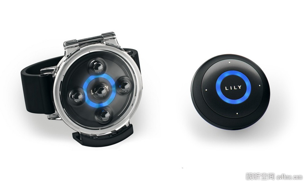 Lily Camera提供匹配使用的跟踪器,该款可以塞进口袋里,或戴在手腕上的微小跟踪装置(下图)通过全球定位系统会智能跟踪用户的行踪,直至每一个移动,并通过先进的计算机视觉算法迅速将通信距离、位置和速度等信息发到摄像机。该款需通过Wi-Fi与摄像机连接的跟踪器还可编程,以便用户通过跟踪器,或随机移动应用程序接收方向信息。
