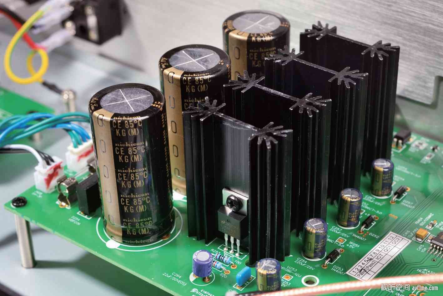 中:3只6800μF的日本Nichicon Gold Tune英文签字版的音频大水塘电容