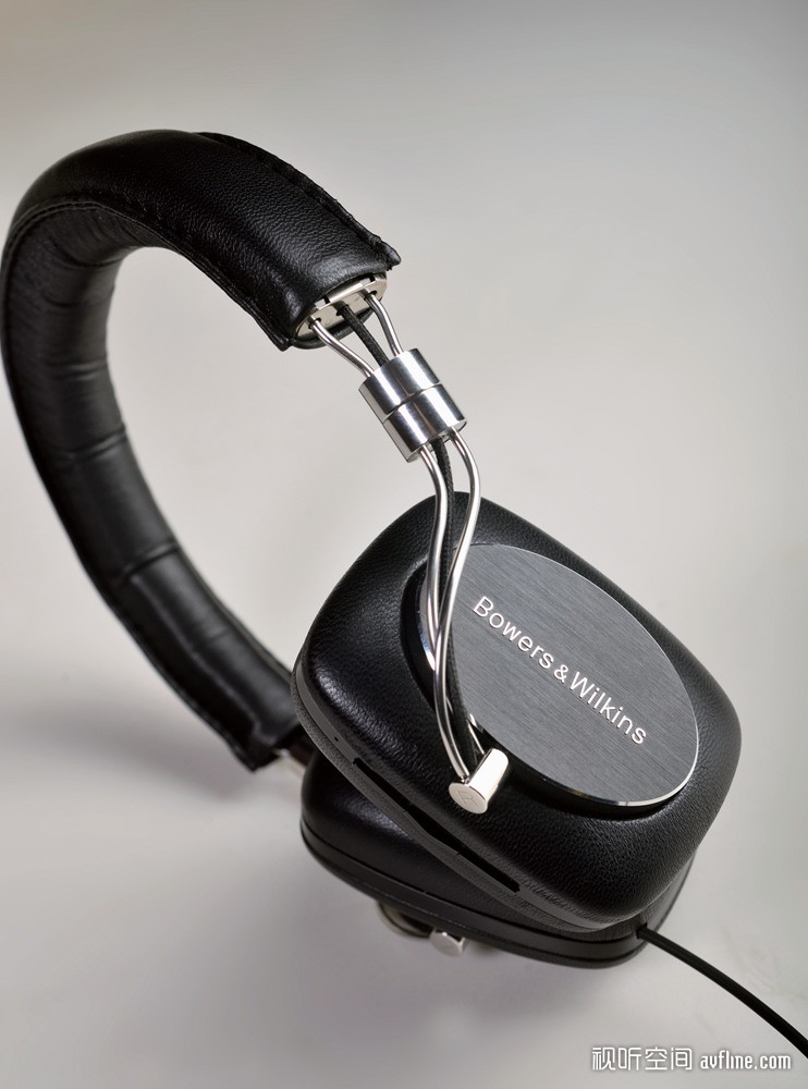 耳机整体选用了非常低调的黑色,耳机头梁以及耳罩部分都是用黑色的皮革,质感非常好,用手轻轻捏下去,张弛有度。皮革缝合部位也流畅自然,没有多余的线头。耳机作为佩戴在身上的东西,这些手工当然是需要去追求的,这就跟你身上的衣服一样呀。银色的金属连接着头梁和耳罩,跟很多耳机不一样的是,耳机拉长部分不是一小节一小节拉出的,而是连续流畅地拉出,这样的优点就是能够非常准确地调整到最佳佩戴位置,不会出现那种“多一格嫌大,少一格嫌紧”尴尬情况。但是P5 Wireless的头梁半径设计有点偏小,导致像我这样“大脑容量大”的人戴着夹着耳廓上的眼睛脚架,戴久了会有不适,即使这样,在刚刚戴上去的时候,还是能够感受到无比舒服,很轻,与皮肤接触的皮革又很柔软,本刊其他同事试戴的感受也是得到极高的赞誉。但如果你的头跟我一样也是巨大无比的话,可能就跟这款B&W P5 Wireless无缘了,请为自己默哀。