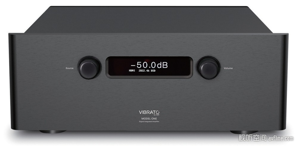 在这6年里,NSR研制的产品包括放大器、数字播放器与音箱等等Hi-End级的音响产品,6年的不断改进,应该说产品趋于成熟,但是NSR并不急于将产品推出市场,直到2016年1月才正式推出售价4万多的VIBRATO Model One数字合并功放。Model One的外观给人耳目一新,面板非常简洁,旋钮和显示屏的大小和位置也出人意料,机器颜色非常低调,但有高贵之感,可以说这是个成功的设计,完全没有大多数音响产品那种老大粗之感,反而多了几分精致。