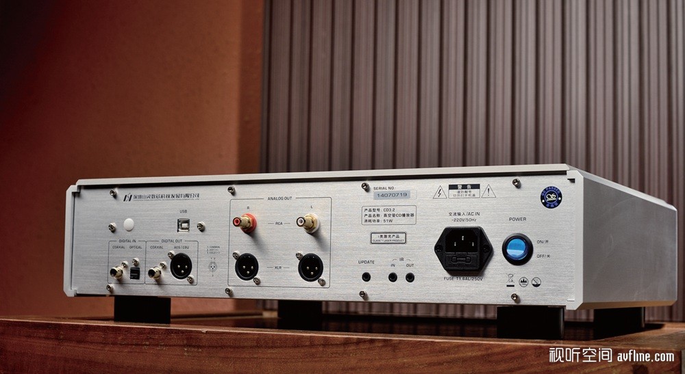 现时的CD机都自带USB输入和解码功能,CD3.2也不例外,提供光纤、同轴以及异步USB输入各一组,其中,USB输入更支持时下非常流行的DSD的解码,用家可通过电脑播放DSD文件。