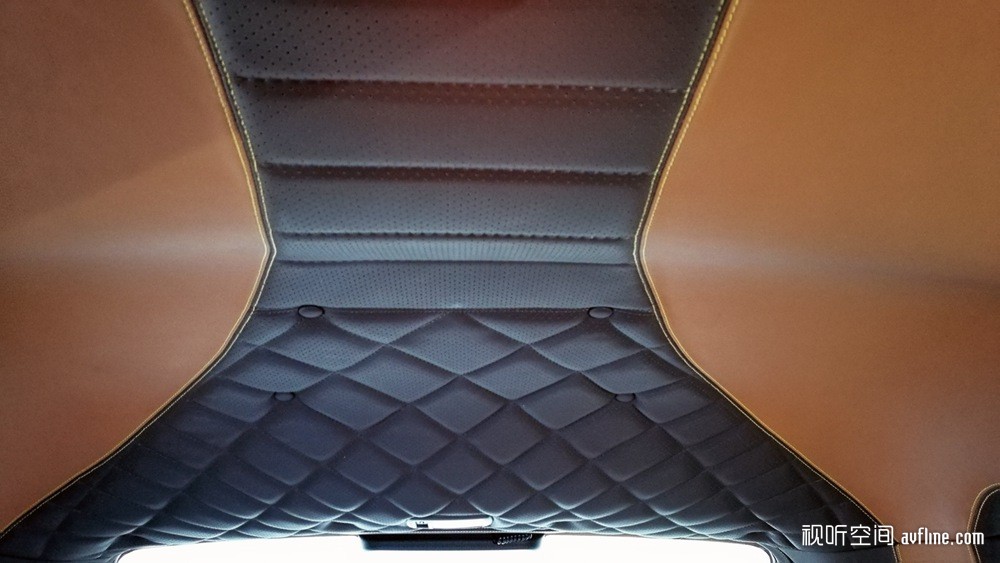 L:说到创新,我倒是感谢汽车音响,拓宽了我的一个业务领域,就是HiFi车顶。通常的车顶,内饰都是绒或者布的,脏了坏了就直接更换。有一次一位发烧友过来做门板工艺,和他聊起音响,他说现在前面两个位子的听感还可以,后排就差很多,因为高音喇叭的能量感不够,车顶的绒又是吸音的,所以高频传不到后排。要是车顶是反射声音的就好了。我就开玩笑说你整张皮上去呀,又高级又有反射。他就说好,等我研究出来之后他第一个上。现在O版看到的就是研究成果了:整个车顶的敷皮从前到后分为三个部分,前排没有打孔,中间部分打孔,后排打孔多一些,孔也大一些,三个部分的填充物料也不一样,这样就做到“前反射后吸收”,极大地改善了后排乘客的听感。