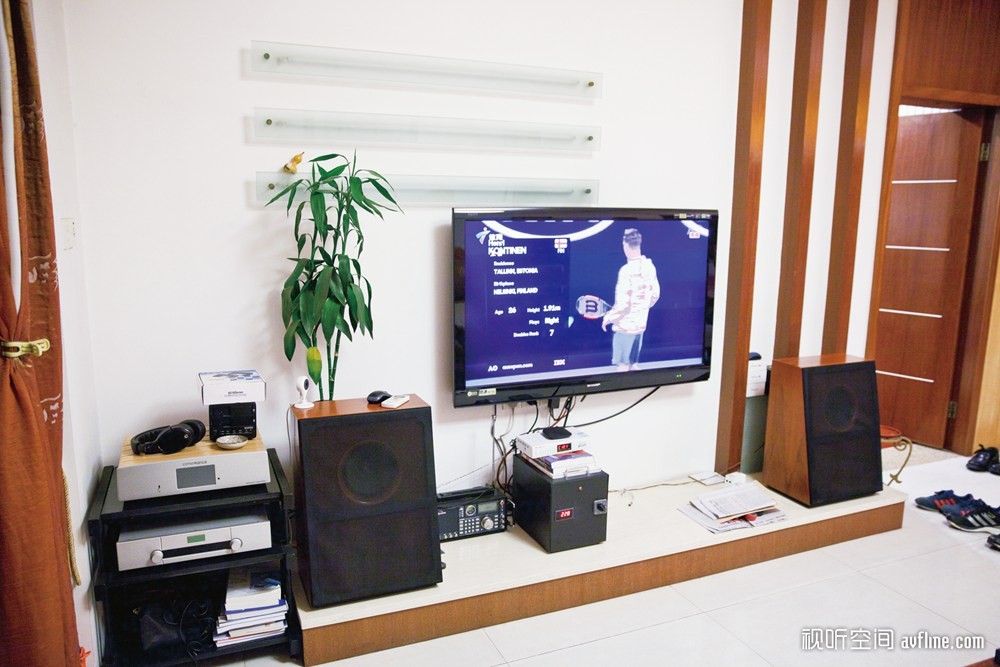 客厅里还有一套由GOLDMUND 330功放和ALTEC全频带音箱组成的系统,用来播放电视歌唱类节目特别有感染力