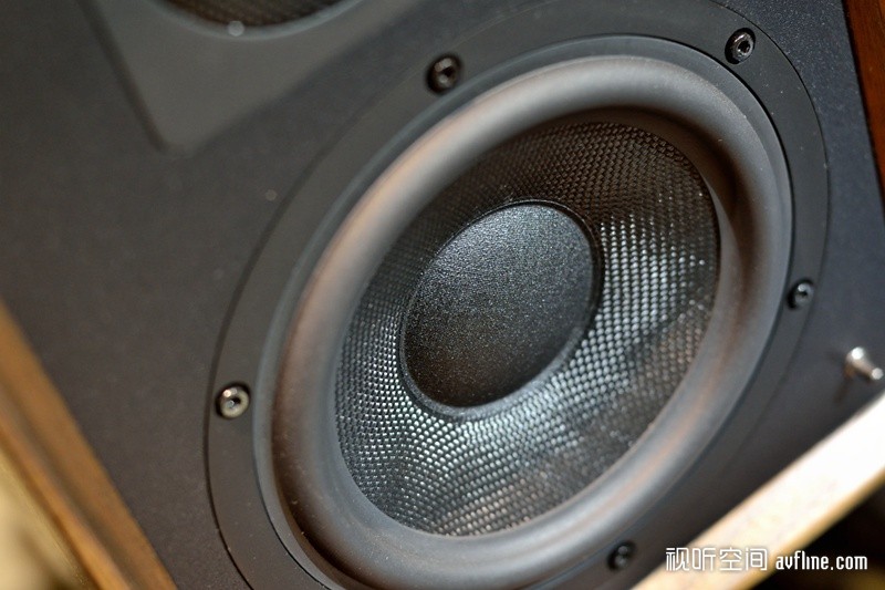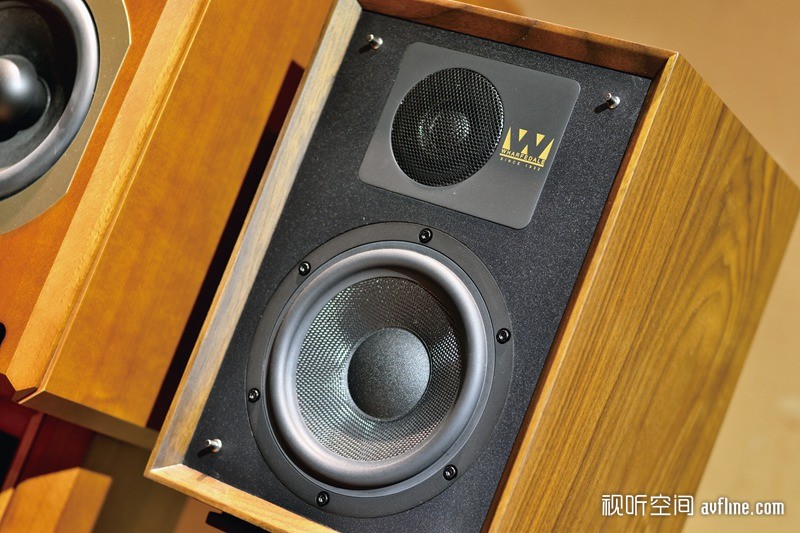 DENTON2 85周年纪念版的魅力何在?盖上网罩的DENTON2 85周年纪念版是不会让人看到真面目的,看上去是一对普普通通的音箱,可是摘下面罩就会发现它的外观是这样的:透着一股复古的气息,内镶的前障板、深色原木皮外饰、比例特殊的箱体。它的外观工艺可以用精细来形容,它的木皮外饰摸上去有一种滑腻之感,边角也是顺滑无起伏之感;内镶的前障板表面是均匀的喷砂之感,在光线的照射下显得很均匀;单元与面板的镶合紧密,并没有影响观感的缝隙。