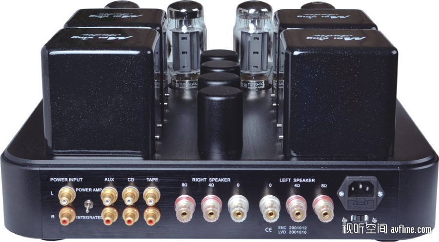 与铭达 MC368-B5一样,丽磁 LM-501IA也是一台既是合并机又可以是纯后级的胆机,不过LM-501IA末级只提供AB1类一种工作模式,它的输出功率达到100W,同时提供4Ω、8Ω和16Ω三种阻抗的输出端子。LM-501IA采用纯胆、纯手工制作,整机采用搭棚焊接,级间采用美国高品质muticap耦合电容,输出部分采用宽频响高品质EI输出变压器,音量控制选用日本ALPS高档马达电位器,具有遥控功能。