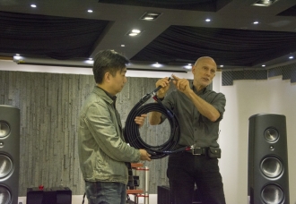 11月8日下午,威达公司于香港铜锣湾世贸中心35楼的陈列室,举行了美国AudioQuest线圣新品发布会。AudioQuest的总裁William E. Low先生亲临现场,带来了Mythical Creature神兽喇叭线系列并介绍了相关的产品。