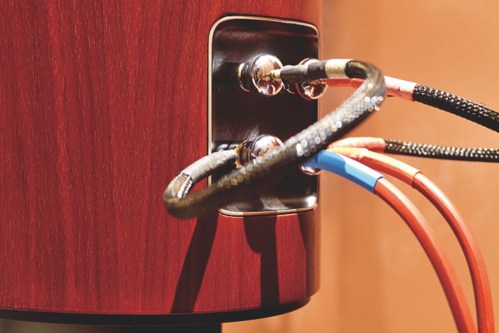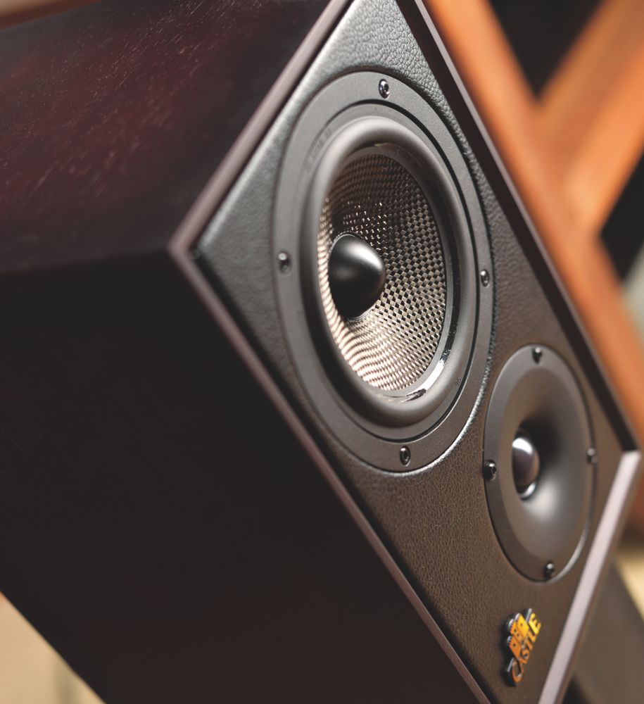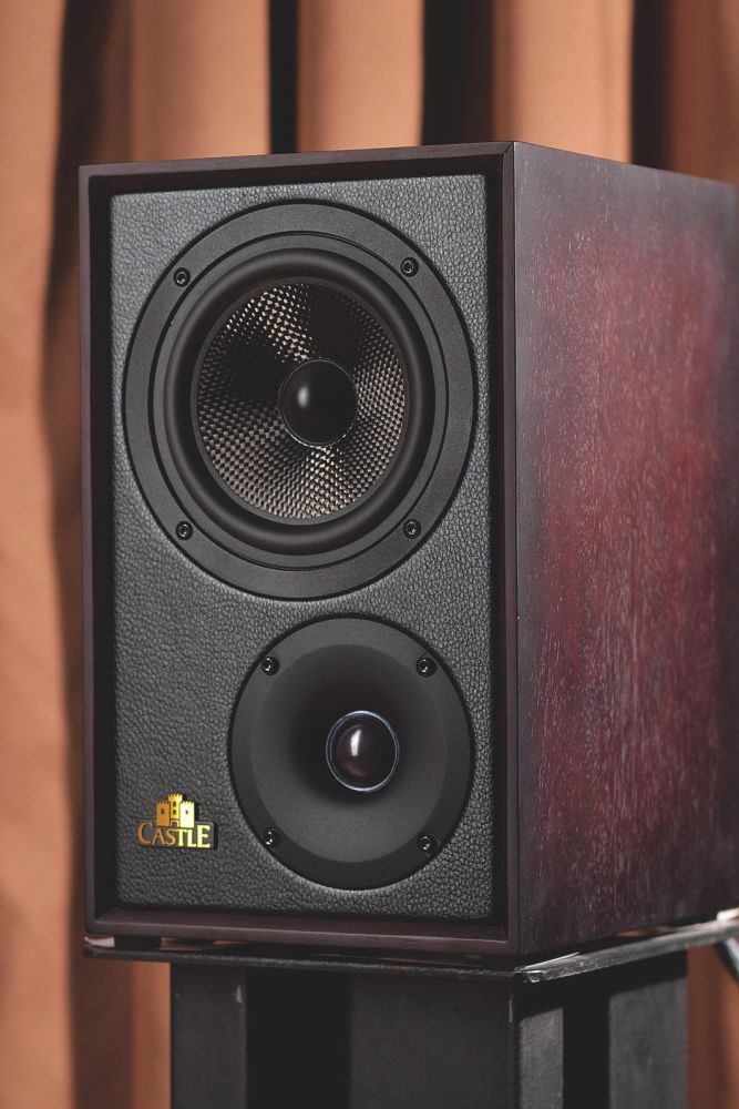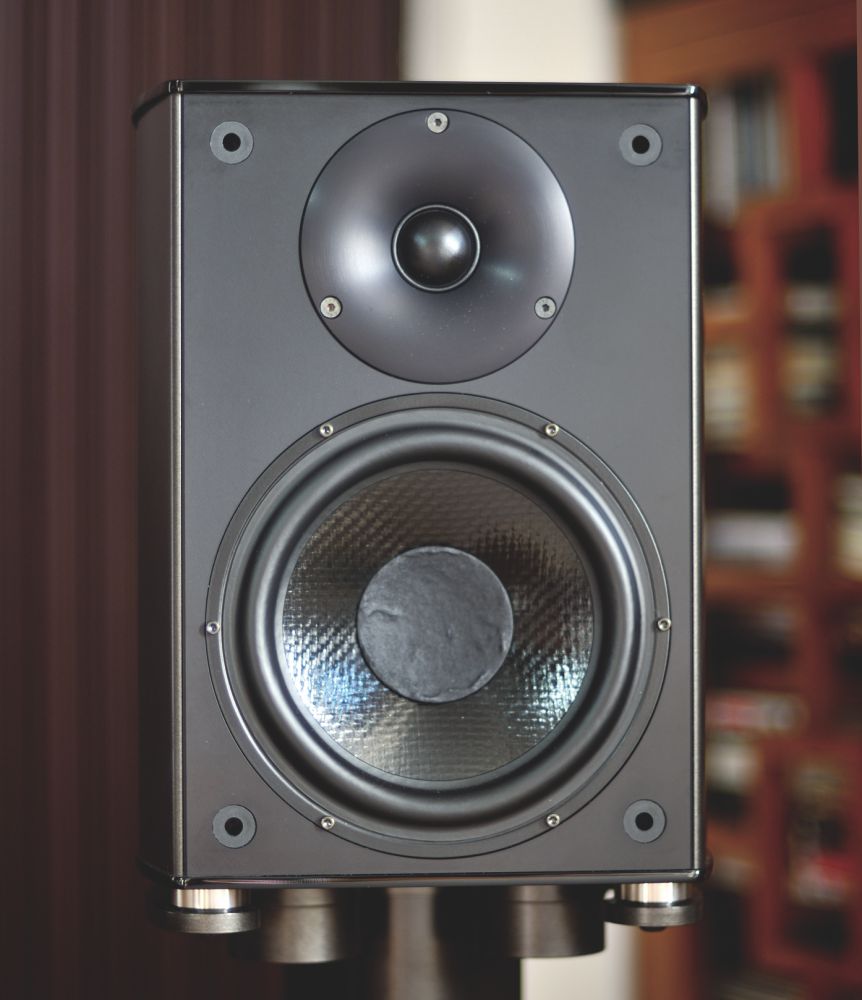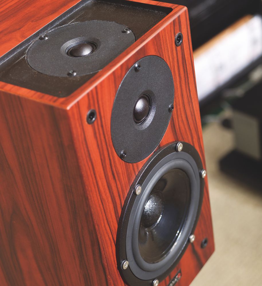 Richmond IV,是英国Castle Richmond系列最新力作,箱体小巧,非常适合在小空间或近场聆听使用。两只单元排布位置与一般二单元二分频的音箱略有不同,中低音单元在上,高音单元在下。而且两只单元并非处于一条中轴线上,两只音箱的高音单元呈镜像对称,具体在摆位的时候也需要根据听音环境和听音习惯进行调整。一般来讲,高音单元向外放置可以拓展音场,向内放置则可以提高声音的凝聚程度,原厂的建议是两只音箱的高音单元应该要靠内侧摆放。比起之前的Richmond限量纪念版,Richmond IV大了一圈,更重了,高音和低音单元都比纪念版大了,频宽也拉大到58Hz-24kHz,以它的体积来说,算是一个很不错的低频响应了。Richmond IV采用双分频双单元设计,用上一颗6英寸的碳纤维编制振膜中低音。得益于那只32mm的丝膜软顶高音,它的分频点拉低到2.6kHz,涵括了更宽的中高频频率范围。