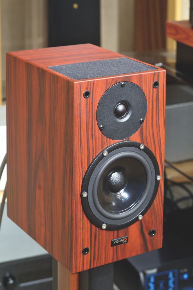 SWING是VIBRATO旗下的首款音箱,也是目前它家唯一一款音箱产品。SWING采用两分频设计,配置有1只5寸中低音单元和2只0.5寸高音单元。从正面看上去,SWING的设计和通常的倒相式书架音箱无异,只是顶部多了一只朝上的高音单元。设计师发现在音箱顶部加了这个超高音单元之后,声场得到拓展,高音的泛音更加丰富,这是这对书架箱的特色之一。SWING的倒相孔位于音箱背部上方,呈上下排列,这是NSR独有的双倒相调谐低电相位失真设计(200-10kHz;<±9度),当然是为了改善声音重播。而且SWING用上了高级原木皮外饰,让整个音箱看起来更美观和上档次。VIBRATO 特别为SWING 这对书架箱研制了 SWING PLUS“外置分频器”,它可以连接在功放于音箱之间,使音箱的阻抗更加稳定。