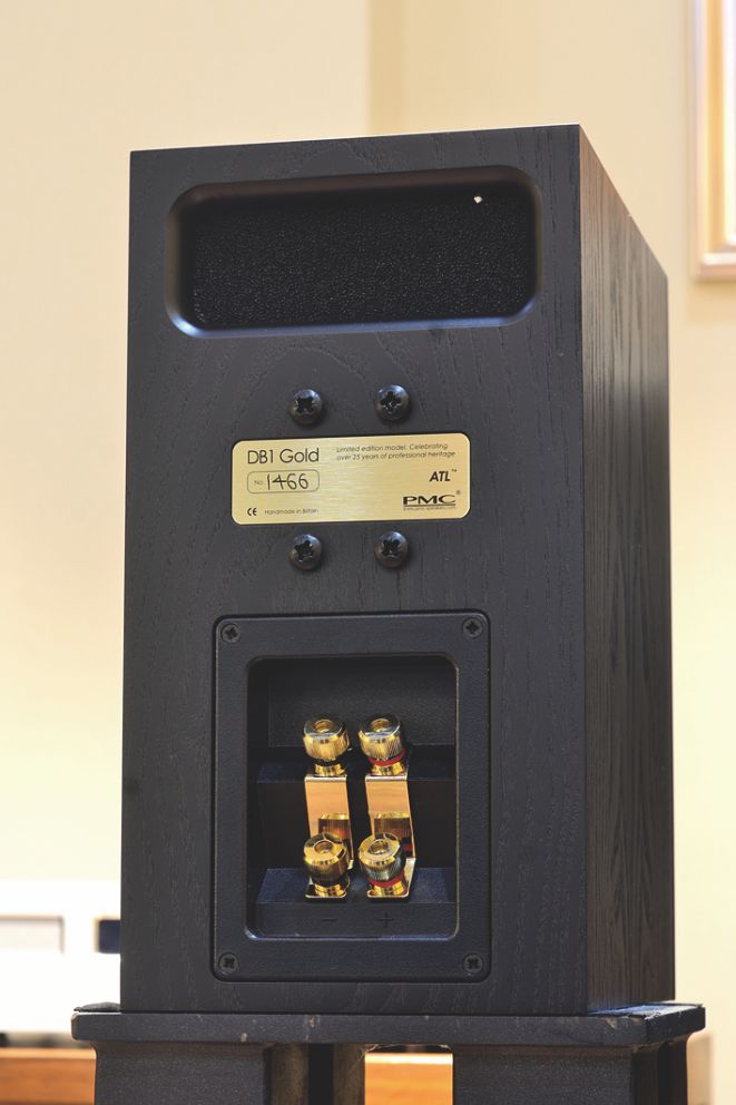 Db1 Gold最明显的特点是采用金黄色的喇叭固定螺丝,标志也是亮金色,在黑色的面板下显得非常抢眼。DB1 Gold是小体积的ATL传输线音箱。它的面板非常狭窄,宽度只有155mm,为了使它看起来更小,设计师将它的ATL传输线开口处设计在音箱背面,这样一来DB1 Gold的箱体高度也不会增加,而箱体深度就不得不做深一些(达到234mm),这样才能容纳1.5米长的ATL传输通道,在小小的箱体里面塞下了1.5米的传输通道,可以想象箱体里面有多复杂。PMC招牌的ATL传输线技术可以带来更好的低频下潜,更多的量感。