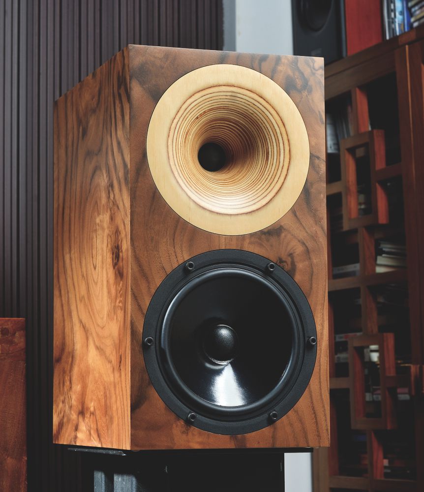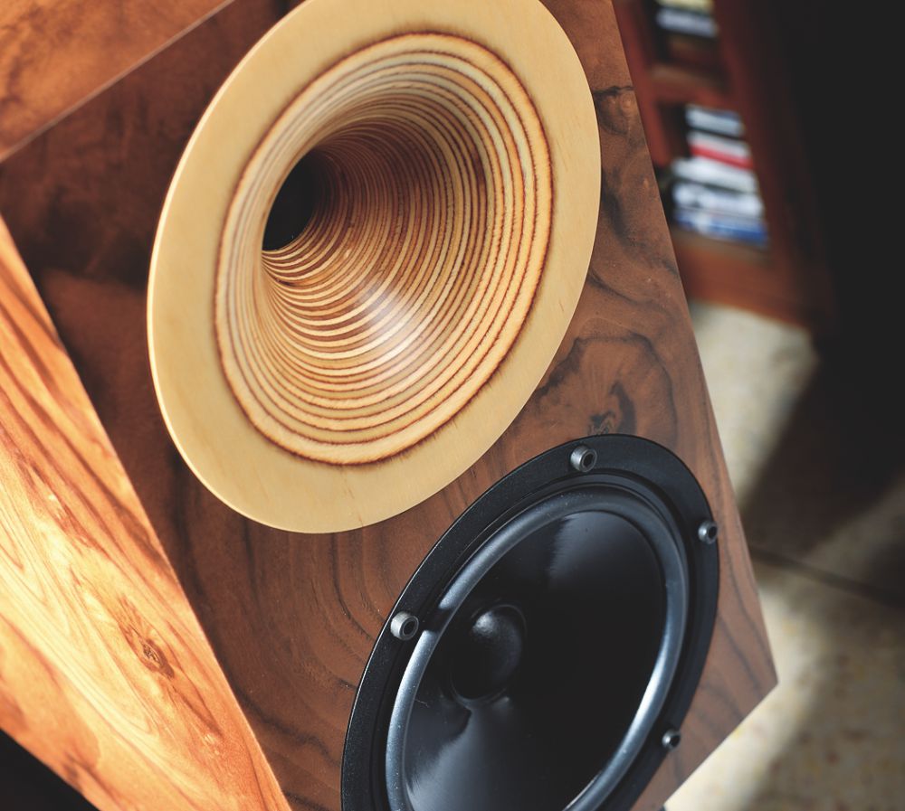 Orfeo使用1英寸的Audax丝质软球顶高音单元,装在6.5英寸的木质号角内。这个木制号角可能比单元本身更贵,好处是提高了单元的能量,使中高频显得更加的透明、细节也更为丰富。在音箱上,我们可以看得出手工制作带来的精致和细腻。多层板制成的号角严密的结合在一起,而且经过精细打磨,完全没有任何缝隙,非常平滑。低音单元为丹麦名厂SCAN-SPEAK的7英寸带特殊涂层的纸盆单元,能带来高动态,迅捷而又清晰的声音。8Ω阻抗和90dB的灵敏度表示Orfeo并不难伺候,几十W的功放应该足够。Orfeo的频响范围46Hz-21kHz,标注的较为保守,实际低频和高频的延伸表现不俗。。