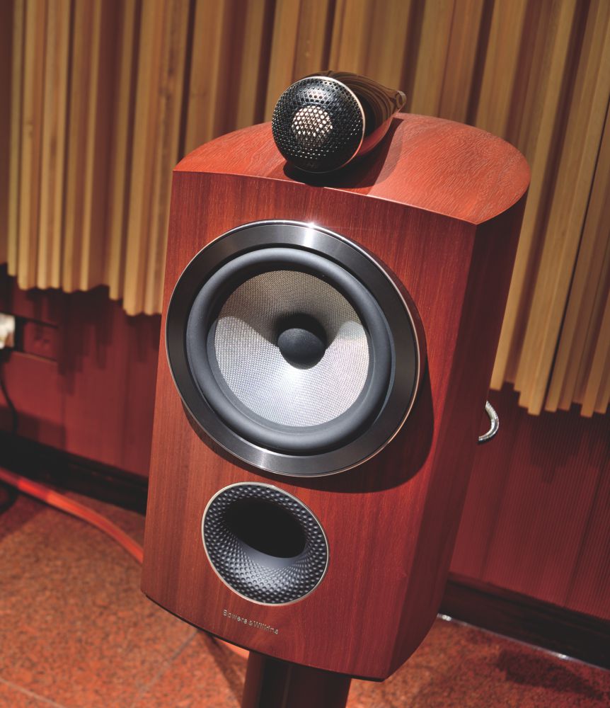 800 D3系列仍然使用钻石高音,但单元性能更好,高频可达70kHz,相比起上一代,高音导管加强了结构,让震动更小,助于提升高音的清晰度。中音单元仍使用过去B&W这八年来引以为傲的无悬边中音,不过中音振膜使用了最新的材料,原厂称此为Continuum Cone,B&W花了八年时间研发这个振膜材料。此一新中音单元比过去使用悬边的Kevlar中音失真更低。中音并没有直接安装在箱体上,而是安装在一个固定于箱体的铝质柱型边框上。同时新800 D3系列的箱体重量更重,结构更稳固,还用上铝材部件,在木质箱体的重要结构处予以加强,在箱体上也增加了弧度。底板也重新设计了。旧型号将分音器藏于底板之中,新系列把分音改装在箱体内。这样一来,底板就不再需要做成空腔,原厂更采用铝质底板,让箱体更为稳定,有助于减少箱体的震动。