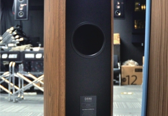 低音单元位于D590的底部,为下扬式的长冲程8英寸单元。将低音单元置于音箱底部,一方面是因为低音在理论上是无方向性的,另一方面是使低音能更好地与房间耦合,从而有一个顺滑的频率响应,且在音箱摆位上也更为方便。