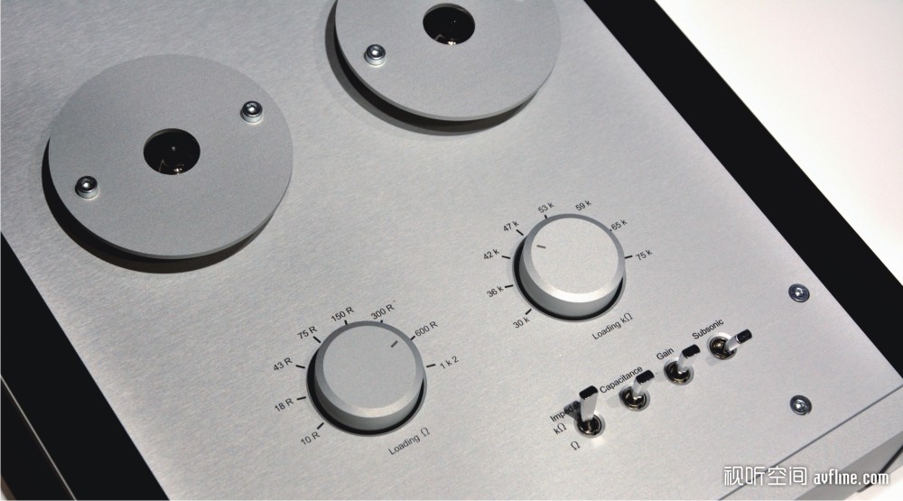 EAT E-Glo Petit唱放同样设有多段输入阻抗和容抗可供调整。输入阻抗提供高低阻抗两组可供调整,其中低阻抗为10Ω、18Ω、43Ω、75Ω、150Ω、300Ω、600Ω与1200Ω共8组参数可选择,而高阻抗则提供30kΩ、36kΩ、42kΩ、47kΩ、53kΩ、59kΩ、65kΩ以及75 kΩ共8档可供调整,因此,无论是MM还是MC唱头,E-GLO PETIT唱放都能有较大幅度的调整与其匹配。而MM容抗也提供50pF、150pF、270pF、370pF、520F、620F共6档选择。值得用家留意的是,唱头说明书上面推荐输入阻抗、容抗值仅仅是一个建议值,建议用家多尝试不同的参数,去找到最适合阁下系统的设置,一切最关键的还是要靠耳朵!