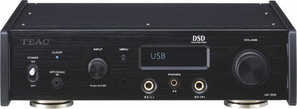 在USB音频播放时,USB异步传输模式中应用了由高精度、低相位噪声的音频级晶体振荡器生成的更精准、更清晰的内部时钟。UD-505可容纳44.1kHz系统和 48kHz系统两个内部时钟,并将它们中的任意一个应用于输入数字信号,即44.1k或48k的倍数,通过消除对音频信号的抖动效果,将相同的声音复制到原始信号中。此外,还配备了一个10MHz的外部时钟输入,与更高精度的主时钟发生器,如TEAC CG-10M同步,以提高音频播放的质量。使用RDOT-NEO(精细数字输出技术NEO),这是一种流畅的算法,可以平滑地增强数字音频信号,它将 PCM 数字信号升频为384kHz/32位PCM和24.5MHz DSD。