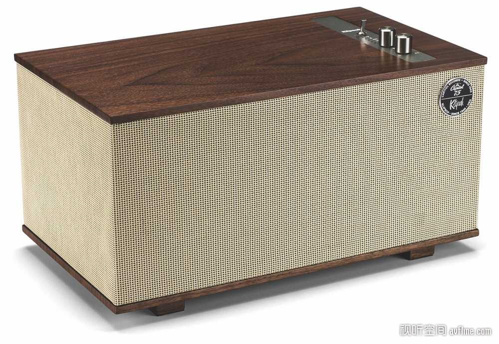 虽说是一款蓝牙音箱,但TheThree并不是那种便于移动的便携式蓝牙音箱产品,其箱体尺寸达到了34.82×17.78×20.3cm,体积上并不迷你。作为Heritage系列中的一员,The Three也沿袭了该系列的复古式设计,加入了木质外观的元素。The Three的箱体内塞入两个2.25英寸的全音域驱动单元,一个5.25英寸的主动低音单元和两个5.25英寸的被动低音单元,音质颇为了得。The Three支持五种输入方式,分别为WiFi、蓝牙(支持apt X)、AUX、USB和RCA。WiFi功能需要通过官方app连接,播放网络共享音乐文件。The Three还支持Phono唱盘输入。