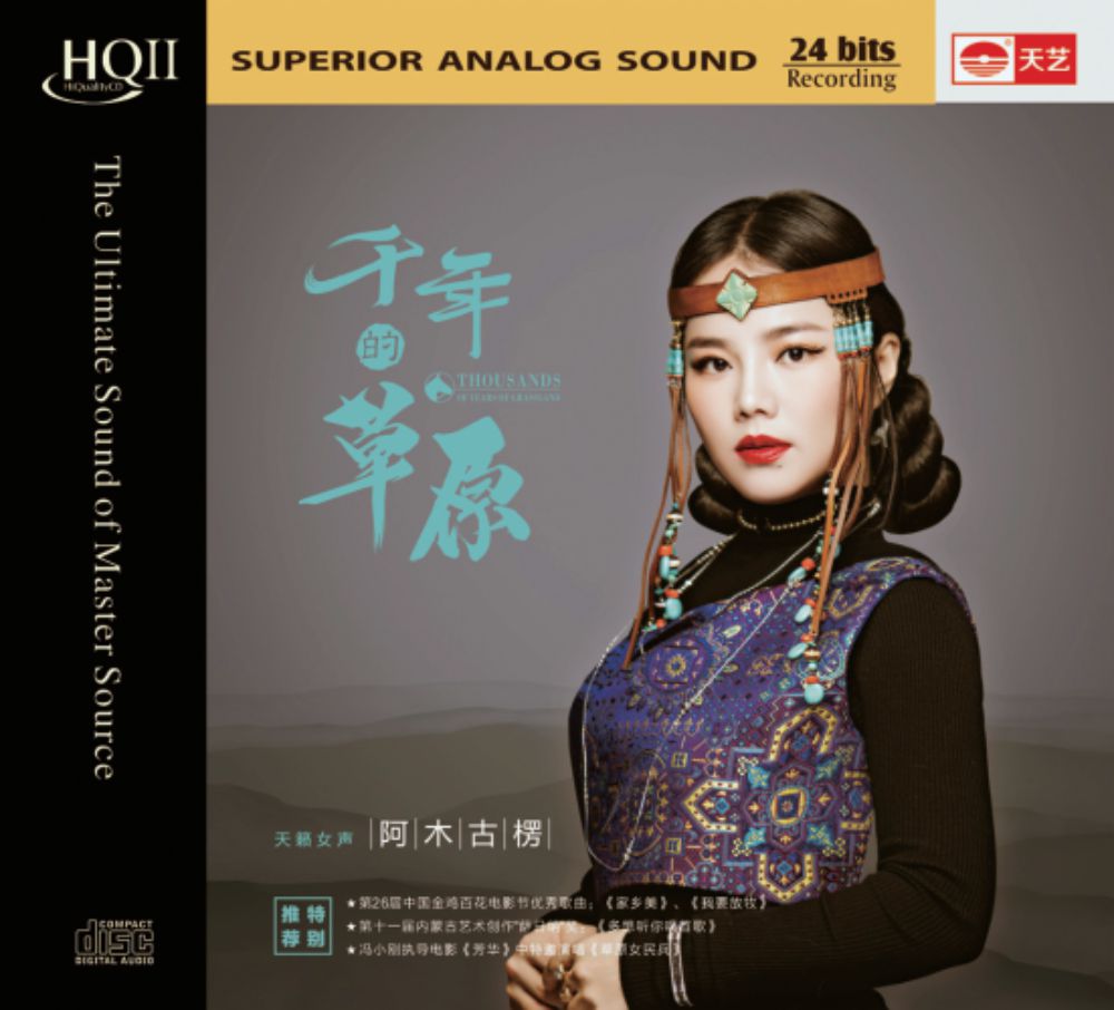 天艺唱片是国内发烧唱片品牌的后起之秀,这几年十分努力,四处挖掘音乐资源,不乏好产品。广种薄收,只要勤耕耘,东隅桑榆终能兼得。 阿木古楞出道多年,未入中央民族学院就读之前就已崭露头角,以其特别嗓音给人留下印象。几年前发行过一张发烧唱片之后就不见动静,这次被天艺挖出来,这个实力强大的声 音又一次展示给听众。 阿木古楞出生于内蒙古科尔沁草原,天生辽阔的歌唱能力,在高音区拥有源源不绝的量,无论长调短调、或跳跃或抒情,她都纵横驰骋自如抒发,可令人舒畅。这张唱片里面的歌曲大多是蒙古民歌风格,这个音乐都有直率的音乐性格,由阿木古楞表达出来,直达胸臆。她的歌声圆润婉转中带着明显的野趣,音色明亮;她的唱功技巧运用娴熟,传情达意到位,无可挑剔,期待下一张专辑。