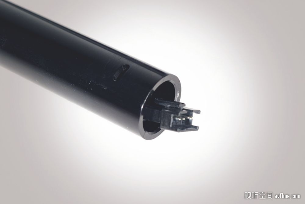 打开包装箱,可以看到4个支架和几捆线材。悠享一号包装中已经包含了所有线材和其他配件,用户不需要再另外买任何东西了,考虑得很周到。线材包括了HDMI线和喇叭线以及电源线。其中前置主声道音箱和顶置音箱是连在一起的,所以用的线材是四条线连在一起,而中置和环绕音箱则是两条线连在一起。掀开上层的泡沫塑料,可以看到摆放在下层的主机、底座和音箱,悠享一号有4组底座支架供左右声道和环绕声道使用。底座支架与音箱底部以金属触点连接,喇叭线接入底座的位置,线就不必悬吊在高处,更方便摆放音箱,而且线材也更易隐藏了。天逸音响预先剪裁好了左右声道和超低音用的喇叭线,另外准备了一条几十米长的线,供用户自己裁剪。悠享一号的音箱端和主机端都以夹紧裸线头的方式接线,所以剪出自己需要长度的线材再刮去一小段表面的橡胶就可以了,并不麻烦。我用了大概半小时的时间,就完成了从开箱到安装到接线的过程。