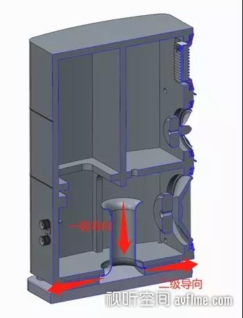 Elysian音箱底部倒相管在扬声器工作时,辐射出的声波经过倒相管后辐射到前方,与扬声器前面的声波相叠加,共同向前辐射,使低频效果增强。倒相式音箱的特点是可以利用箱体和倒相管的共振,在扬声器的声压不变的情况下,扩展低频,其低频可以扩展至扬声器共振频率的0.7倍。