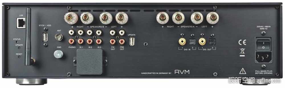 新一代的数字讯源CS 5.2也一并纳入,如现在最新的流媒体播放,CS 5.2便备有Wi-Fi无线输入与RJ-45网络线输入,并支持DLNA功能,可以直接连上网络,播放储存在计算机或NAS中的音乐,最高支持32bit/192kHz格式。网络广播则提供vTuner服务,让你听遍全球各大网络广播站台。而最新一代的AVM CS 5.2则加入了BT蓝牙接收功能,只需要一台手机就能享受高品质的音乐。