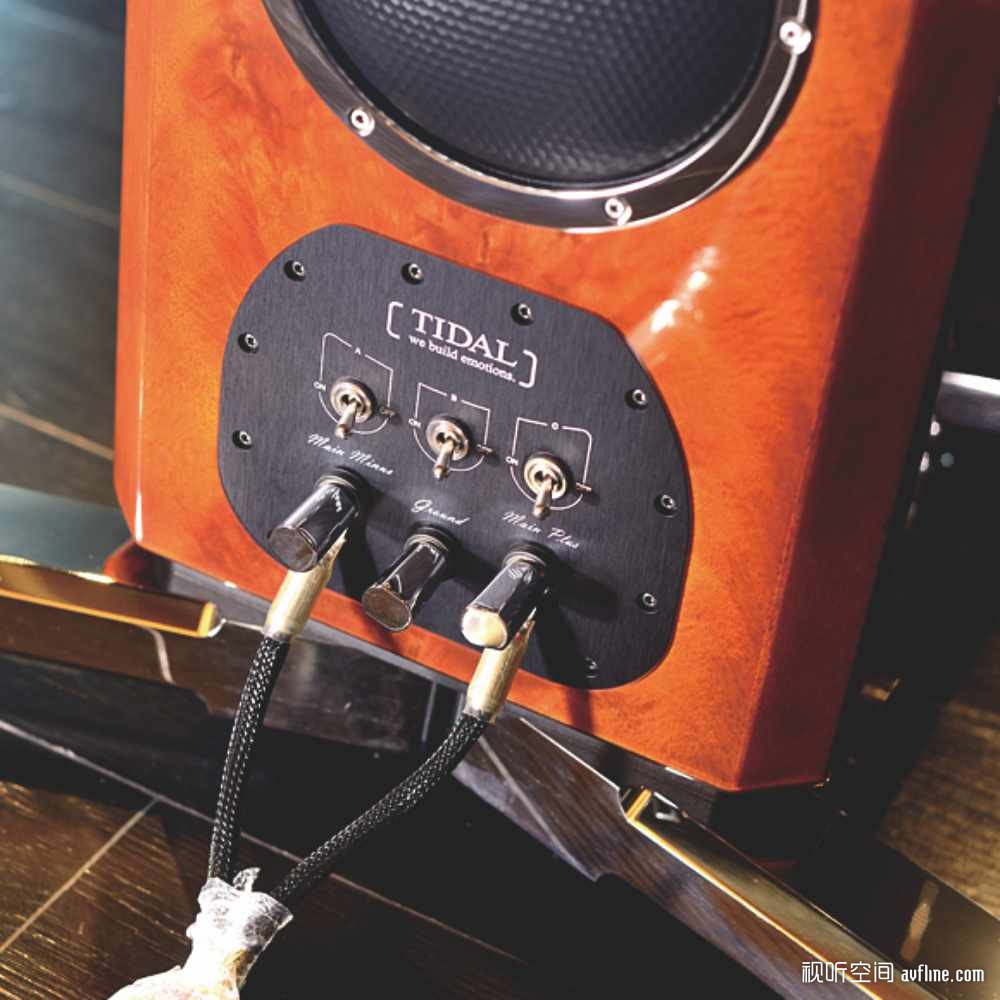 Akira的分频器安装在独立的密封屏蔽箱室中,TIDAL不惜工本地定制了例如 Duelund银膜电容,金属膜电阻,银碳电阻,超低阻抗低频电感器等等,每一个元件都经过严格的评核和挑选,只有耐久、稳定的上乘元器件才会被选用。重料堆砌和精耕细作之下的分频器可以重达20kg!可以说分频器也是TIDAL的另一杀手锏!此外,Akira配备了独一无二的纯银接线柱,确保最小的电阻。值得一提的是,Akira并没有像一些顶级音箱那样设置成双线甚至是三线输入,而是采用单线输入,厂方坚信,只要搭配到一台合适的放大器,只需要一台,也能够将Akira推得服服帖帖。此外,接线柱中间为接地接口,方便用家把玩接地。