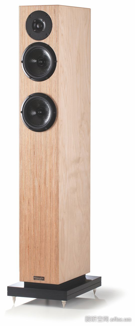 在《视听前线》9月刊我曾介绍了Talvi的姐妹型号Lumi(雪)书架式音箱,Talvi正是Lumi的大型版本:两者所用的单元型号是一样的,但数量不同,Talvi比Lumi多用了一枚中低音单元,并且变为箱体更大的落地式设计。Penaudio的音箱均使用挪威SEAS单元,当然这是按Penaudio的要求特别定制的。Talvi使用一只Excel系列的25mm软球顶高音单元和两只Prestige荣誉系列的145mm口径的聚丙烯编织振膜中低音单元。高音单元使用织物振膜及SONOMEX悬边,加有磁液,通过加强音圈的散热性能来提高单元的功率承受能力。中低音具有良好的内阻尼特性,使用橡皮悬边,为长冲程设计,锥盆中心的相位塞能减少因音圈温度升高而产生的“声音压缩”现象。