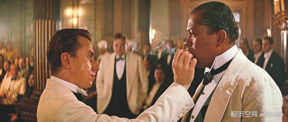 《海上钢琴师》留给我们的惊艳场段是很多的,音乐的魅力通过画面和剧情的巧妙安排,一次又一次地征服了观众。比如1900为马克斯展现琴技万能的方法,他让马克斯随便定位船上某个乘客,1900盯着那人,就能为他来首恰当的即兴配乐,整个过程行云流水,让人叹为观止。唱片录制完成,出版商把唱片放给1900听,他没有把唱片给出版商,因为他不允许别人把他的音乐从他身边带走。他犹豫再三,想把唱片送给那位素不相识的女孩,却没能如愿以偿,1900无法掩饰自己的哀伤,他失望地毁了唱片把碎片扔在垃圾桶里,与那昙花一现的爱情失之交臂。最炫的高潮当然是1900与爵士乐的传奇钢琴手杰利(该原型人物应该是著名的爵士乐钢琴家“果冻卷”莫顿)现场比拼琴技的那一段,当1900如暴风骤雨般奏完一曲顺手拿起烟卷在已经发烫火红的琴弦上点燃时,相信每一位观众都成为了这位潇洒钢琴师的铁杆粉丝。影片给我们留下的伤感和思索也很多,1900如无根浮萍般的孤儿身份固然令人同情,爱情如蜻蜓点水从他身边滑过更令人惋惜,当1900下决心追寻幸福又让我们为之鼓舞,而在最后1900的双脚还是没有踏上坚实的陆地,则彻底击垮了我们内心那根脆弱的心弦。为什么?为什么?为什么他做不到?每一个观众在后来可能都思考过这个问题,钢琴家身体是自由的,音乐是插上了宽大的翅膀的,但是他的灵魂却终生被禁锢在一个无形的牢笼之中,未知的花花世界那种不安全感如此之强烈,使得他最后选择回到熟悉而又单调的生活中。反过来看,我们这些观众中的大多数的人生经历,其实和1900何其相似。