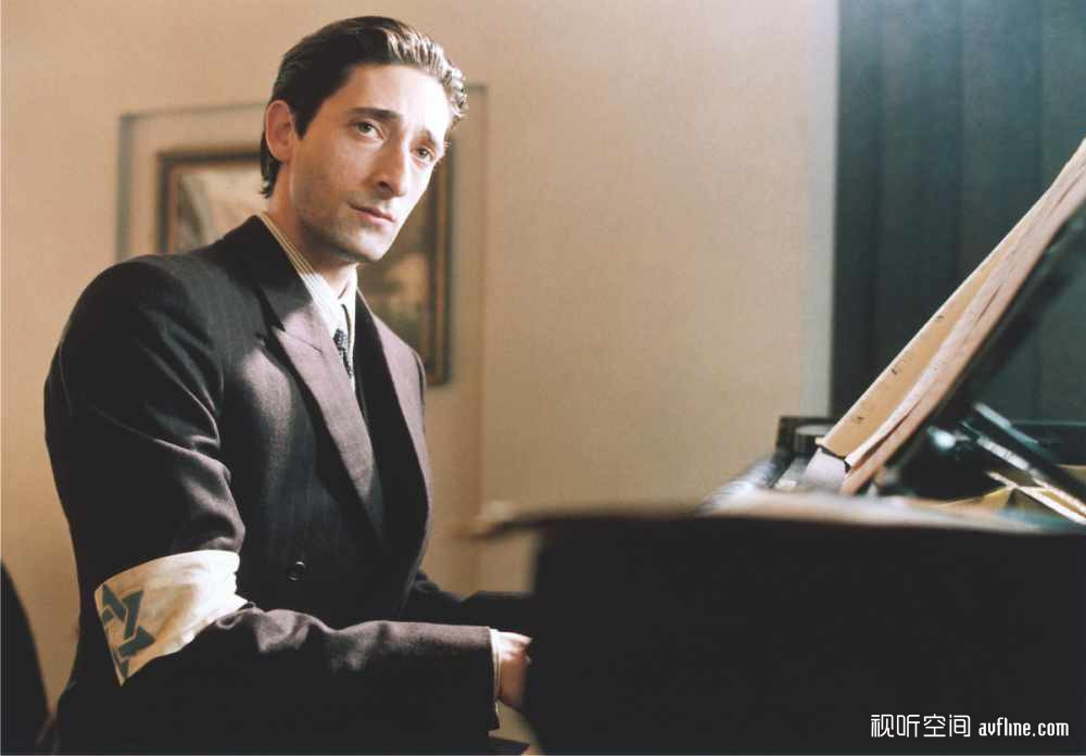 艾德里安•布洛迪饰演的钢琴家主角,毫无疑问是这部电影最为人称道的部分。他瘦削的身形和略带潦倒气质的面容,简直就和挣扎在战乱波兰的影片男主角灵肉合一,饥饿和病痛囚徒的猥琐,让他在生理外在上几乎没了人形儿,然而作为一个音乐家和犹太人,他没有因此丧失起码的尊严和内在的精神。影片中的钢琴家毕生最好的一次钢琴演奏,不是在战后的波兰电台,不是在灯火辉煌的音乐厅,甚至也不是他在避难所那次惊心动魄的空弹,而是在废墟般的空城华沙,是在明知必死全然豁出去了的心态下为那个纳粹军官的弹奏。这首曲子来自肖邦,伟大的波兰人民不屈精神象征的肖邦,作品23号G小调第一号叙事曲,它大大升华了这部电影。肖邦在他的一生中共写过4首叙事曲,作曲家在这4首作品中创造了一种非常自由的新形式与新内容,超越了传统叙事曲那种较为固定的曲式。肖邦自己表示,这4首叙事曲的内容来源于同乡诗人密契维兹的诗。至于第一号叙事曲,肖邦多次向他人表明这是他自己最喜欢的创作。乐曲的构成是一种变形的奏鸣曲形式,开始时是类似提琴齐奏的叙唱风格般庄重的最缓板,之后乐曲转为中板,似乎开始叙述优美的故事。乐曲中包含着极其复杂的钢琴技巧,并且多次运用了色彩性转调。结尾部分约30小节洋溢着扩散中的狂暴热情,带给人全曲中最惊奇的印象。这里是被充分戏剧化了的地方,应该代表的是前面叙述的终结。此曲是作者感情的真实流露,是一篇用音符写就的爱国主义的史诗。它时而婉转亲切、富于诗意,时而心潮澎湃.壮怀激烈,沉着而忧伤的旋律,时时发出叹息的声音,好像在讲述一个被奴役的民族的苦难的历史。纳粹军官在一曲完毕后萌生恻隐之心,我们理所当然可以认为这是伟大音乐的胜利。这首重要的曲目,被《钢琴师》电影原声带(编号:SONY SK 87739)收录在唱片里的第5首,从资料得知,这部电影里出现的钢琴演奏片段,全部是由当代犹太裔钢琴家Janusz Olejniczak演奏灌录,他虽然在乐界名声不显,但是技艺相当完美,至少他演奏的肖邦可排在当代最佳之列。《钢琴师》电影原声带中还收录了电影中出现的乐曲,有肖邦的升C小调夜曲、E小调夜曲、C小调夜曲,第二号叙事曲,A小调第三首华尔兹,E小调前奏曲,作品22大波兰舞曲等,另外还有当代波兰作曲家沃伊切赫·基拉尔的一首单簧管小品。在影片的结尾出现了一段肖邦玛祖卡舞曲的历史单声道录音,这是影片主角原型,钢琴家瓦拉迪斯劳·席皮尔曼留下的演奏记录。
