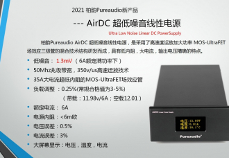 来到2020年年底,柏韵带来了酝酿已久的两款新产品:AirDC超低噪音线性电源、Pureaudio AirCore音频串流播放服务器。