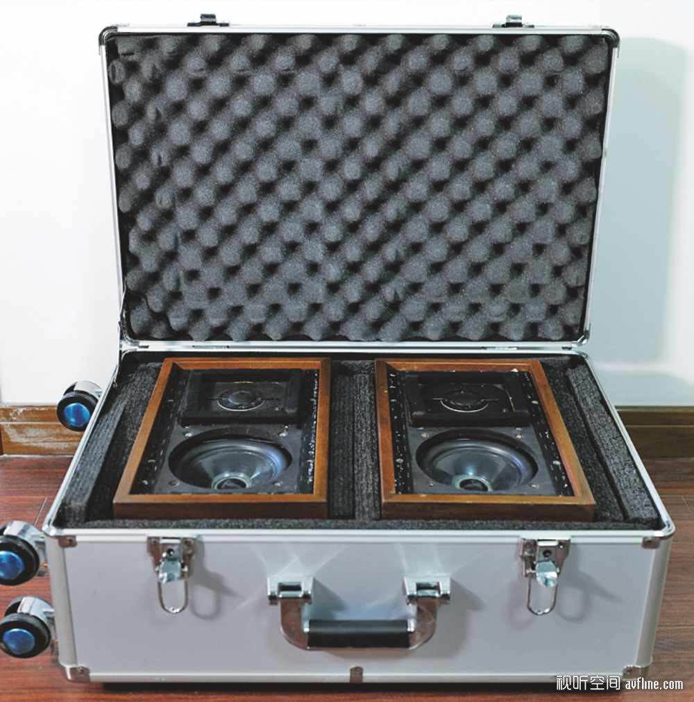 话回正传,我问大树,这一大一小哪款合适我,大树诙谐的回答,这一大一小都合适你。我觉得也对,梨子需要变革才知其味。一对阻抗8欧、一对阻抗15欧,不同时期不同原件配置造成不同的电声特性,在感官上带来的是年代的回响。大树为了使我方便保护和提拿LS3/5A,特意加置一只铝合金旅行箱,把LS3/5A纳入其中。其中还发生一个惊人的事件,当时我开了一辆奥迪A6,尾箱放了一只这种铝合金箱子,箱子里装的是大树的ROGERS大金牌。车子在诸暨被一辆半挂车追尾,奥迪尾箱被撞发生位移。我打电话给大树,报告车子被撞。大树首先问人怎样,我说人没事,大金牌在尾箱里,不知如何。大树说人没事就好,大金牌可以再找(暖心的话至今还在我耳边回荡)。我好不容易打开尾箱,铝合金箱子无恙,大金牌无恙。天佑我大树佑我,人货均无恙。