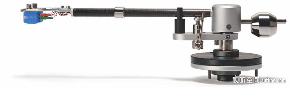 臂管采用卷装式碳纤维制作,提供极高刚性和均匀纤维结构。至于唱头壳则由铝合金加工而成,通过精心设计的结构连接组件跟碳纤维臂管相连,免除共振产生之余,又可以提升强度与重量比。碳纤维臂管身上,配备可调节的不锈钢耦合环,既能用作微调唱重,还可同时改变臂管和唱头之间的共震频率。