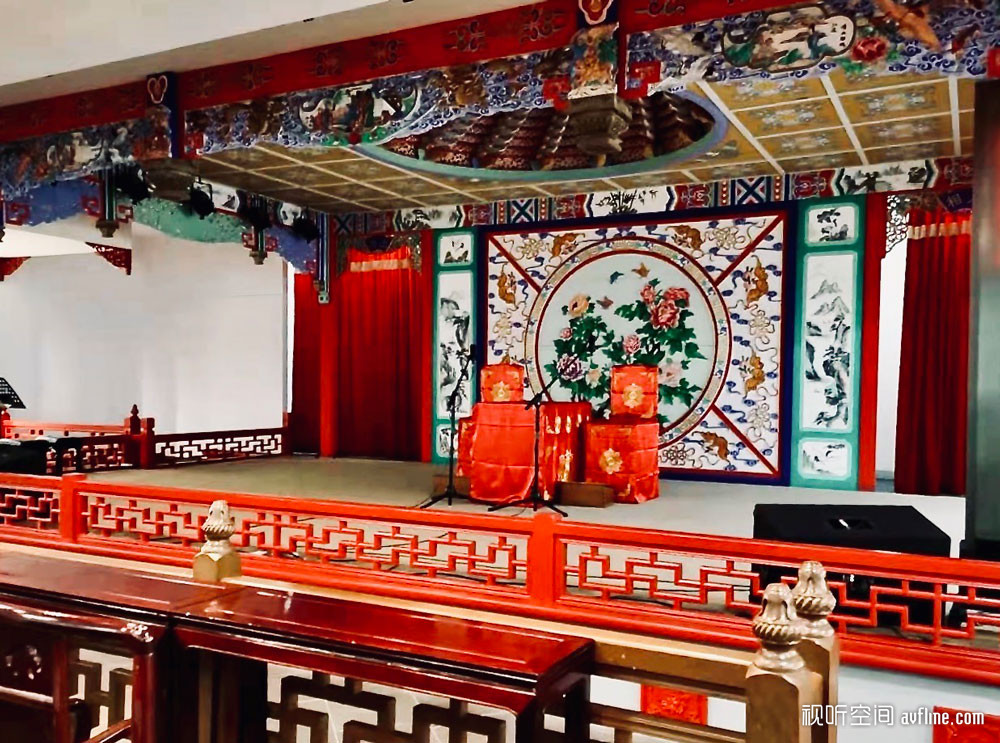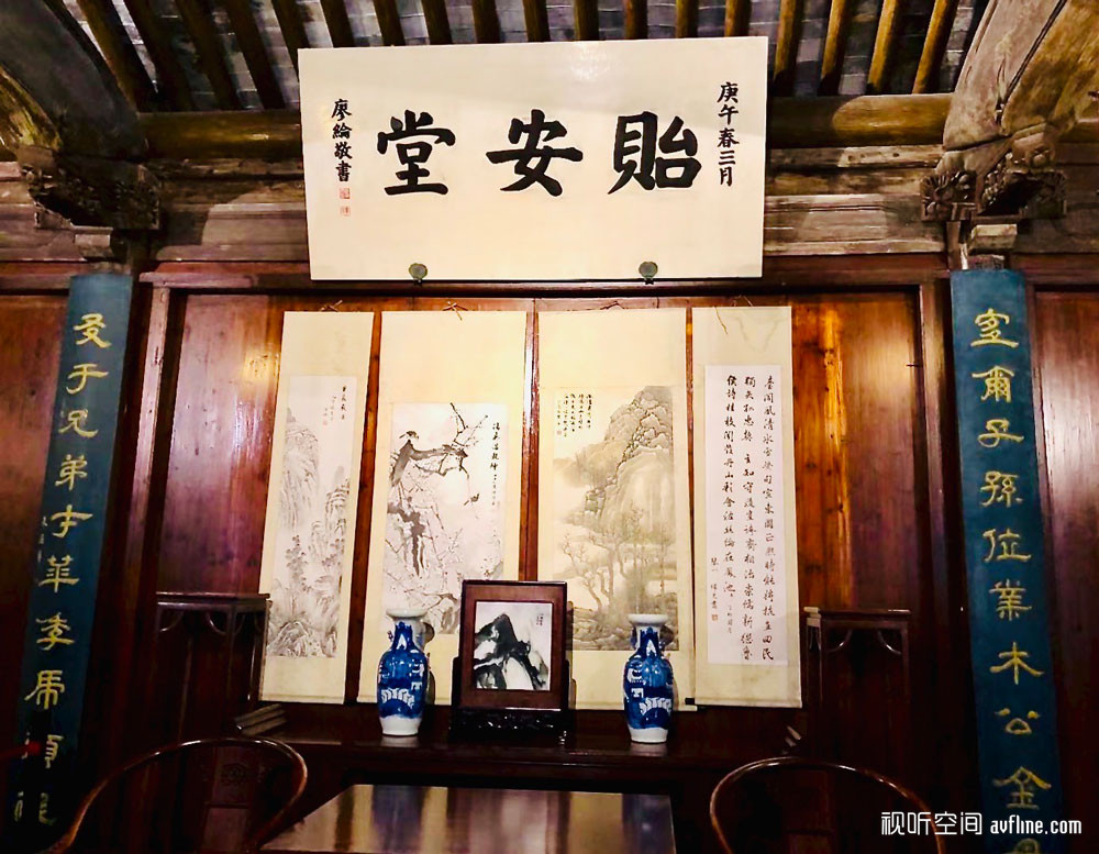 忽然之间想起来,刚才进入古镇后,这第一件让人看得眼睛有点发亮的东西,就是那座巨大的古戏台。它重檐歇山顶,典雅又精致,实在内涵深深;砖雕饰身,木雕挂板,栩栩如生的图案全是昆曲中一幕幕场景。台前两根石柱刻着一副对联:“乾坤大戏场,请君更看我中我;俯仰皆身鉴,对镜休疑身外身”。想起来莎翁一句名言: “All the world is a stage.”(世界是个舞台),竟有异曲同工之妙!