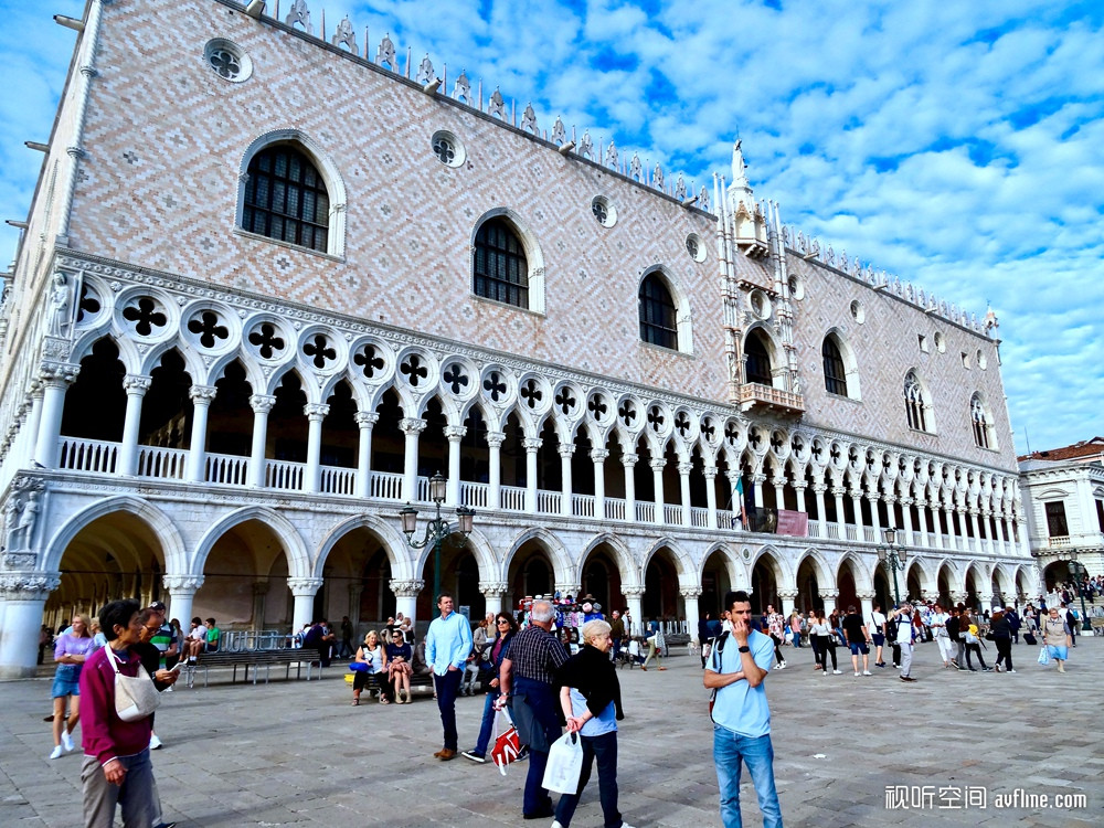 很不容易。我们坐大巴,乘渡轮,终于来到威尼斯。路上,导游一直在喋喋不休:大家注意了,我们今天可是代表子孙后代来这里游览的。因为全球气候变暖,海平面迅速上升,美丽珍贵的水城威尼斯即将沉入大海。他的话让人格外珍惜今天的游程,真好像明天就是世界末日了。那么,诺亚方舟还有没有呢?一脚踏上圣马可广场,立刻就被一种无与伦比的美惊呆了。迎面而来的是两根高耸入云的圆柱,右边那根,顶端有只展开双翅的雄狮,它的左前爪扶着一本圣书,上面用拉丁文写着天主教的圣谕:“我的使者圣马可,你就在这里安息吧!”这就是威尼斯的城徽;左边柱子的顶上是威尼斯守护神圣狄奥多的塑像。这一切都昭示着:威尼斯有这么辉煌而强盛的过去。广场上熙熙攘攘,人头攒动。鸽子比以前少多了,据说这是采取了某种限制生育的技术,以减少鸽粪对珍贵古建筑的腐蚀。圣马可广场又叫威尼斯中心广场,这里一直是威尼斯的政治、宗教和公共活动中心,许多传统节日庆祝活动,包括著名的“威尼斯狂欢节”都在这里举行。我举目四望,广场近似长方形,长约170米,东边宽约80米,西侧宽约55米,被法兰西巨人拿破仑誉为“欧洲最美的客厅”和“欧洲最美的广场”。他的话真不错,你看看这长长的回廊,用目前网上最时兴的语言来形容,就是“高大上”,就是“凡尔赛”!周围的著名建筑有:公爵府、圣马可大教堂、圣马可钟楼、新旧行政官邸大楼、连接两大楼的拿破仑翼大楼和圣马可图书馆等等。其建筑风格多种多样,从中世纪一直到文艺复兴时期都有,堪称欧洲建筑博物馆。我略定了定神,打开相机,调整各种角度,避开时时遮挡的人群,把它们一一摄入镜头。忽然之间,我真的喜出望外,瑰丽恢宏的圣马可大教堂的一侧门口,排着一队并不很长的队伍。原来,今天大教堂对公众开放,而且还免费。感谢上帝!今天排队时间不长,只用了不到半个小时。一进入教堂,我只恨两只眼睛不够用:金碧辉煌琳琅满目的壁画、油画、雕塑、巨幅的彩色拼花玻璃窗户、装饰精致的神龛、熠熠燃烧的白色蜡烛群、拜占庭风格的马赛克装饰画、各式各样的珍贵艺术品比比皆是。看见身边正在虔诚祈祷的信教者,我的心稍稍沉静了些,走到成排的高背长椅边,选择一个角落里的座位默默坐下。我要在这样一个完全真实的现场,好好体验一下欧洲教堂里所特有的清明澄澈,宁静安详的宗教氛围。圣马可大教堂,据说是因为这里埋葬了耶稣的门徒圣马可而获其名,至今他的遗体还存放在前边的大祭台的下面。自然,教堂外的广场亦顺用了同样的名字。大教堂的建筑融古罗马式、拜占庭式、哥特式、巴洛克式、伊斯兰式、文艺复兴式等各种风格于一体,体现出鼎盛时期的威尼斯在文化方面的海纳百川和广阔包容。
